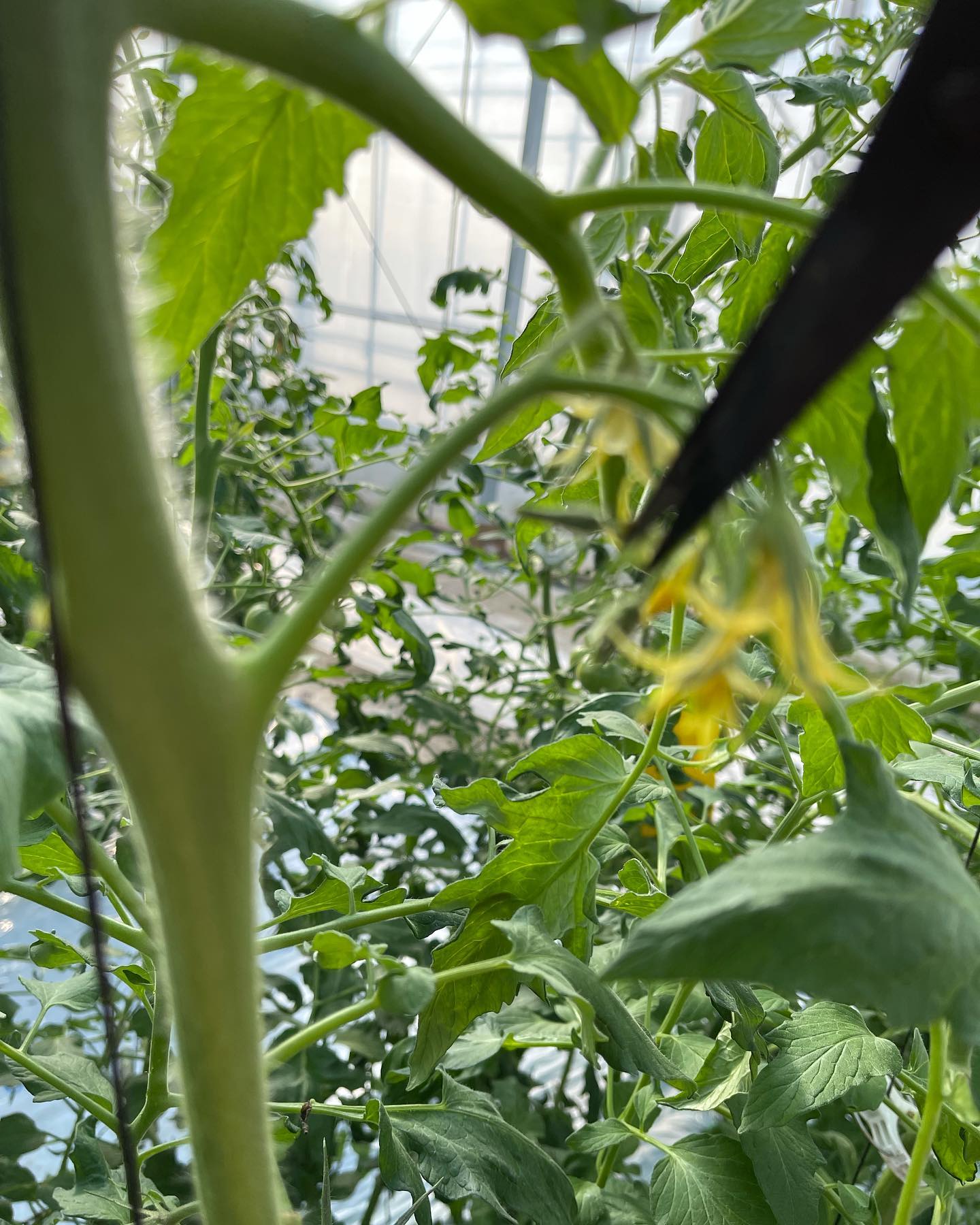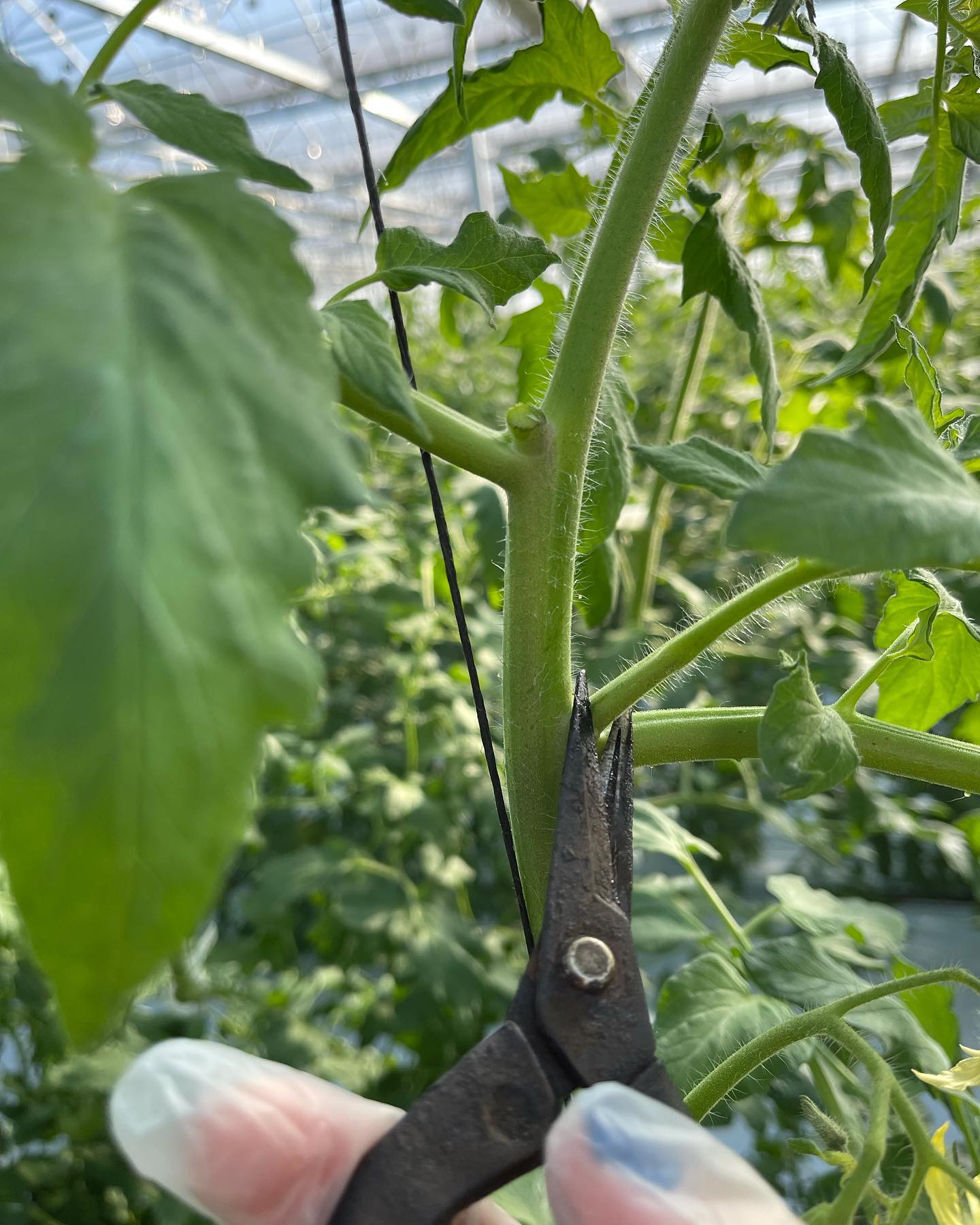 午前中のハウス仕事は写真1、2枚目のわき目取り、3枚目のトップリーフ取り、4枚目の摘花をしていました