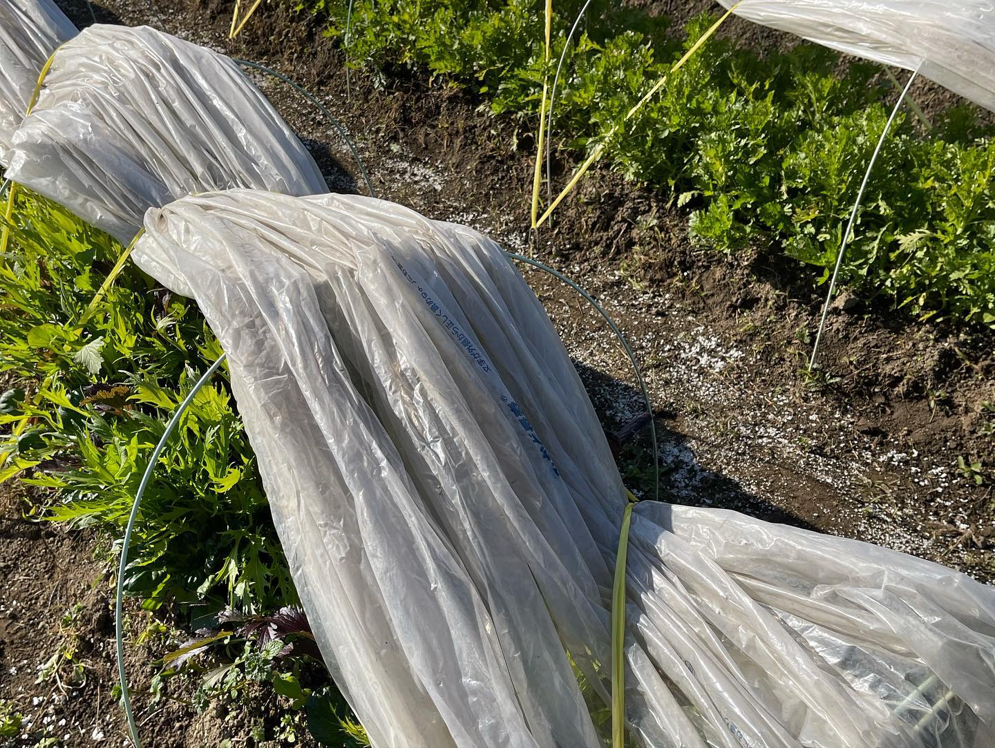 来週辺りから朝方の気温が低くなる予報なので霜に弱い野菜にトンネル作りました🥬